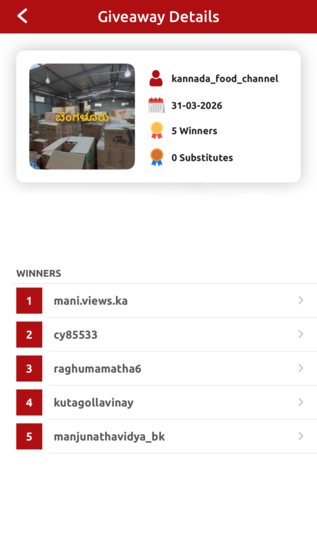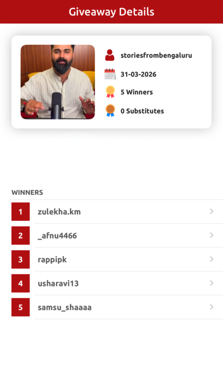 Social media contest winners News LUCKY DRAW Shop for 2500+ and enter the lucky draw-win Samsung Phones, Induction Cookers & Clocks.LUCKY DRAW HELD ON12 April 2026 9.00 PM @Marathahalli BranchWinners will announce on 13 April via instagram Giveaway Draw Part 1 Giveaway Draw Part 2 Winners Malayalam story Winners English story